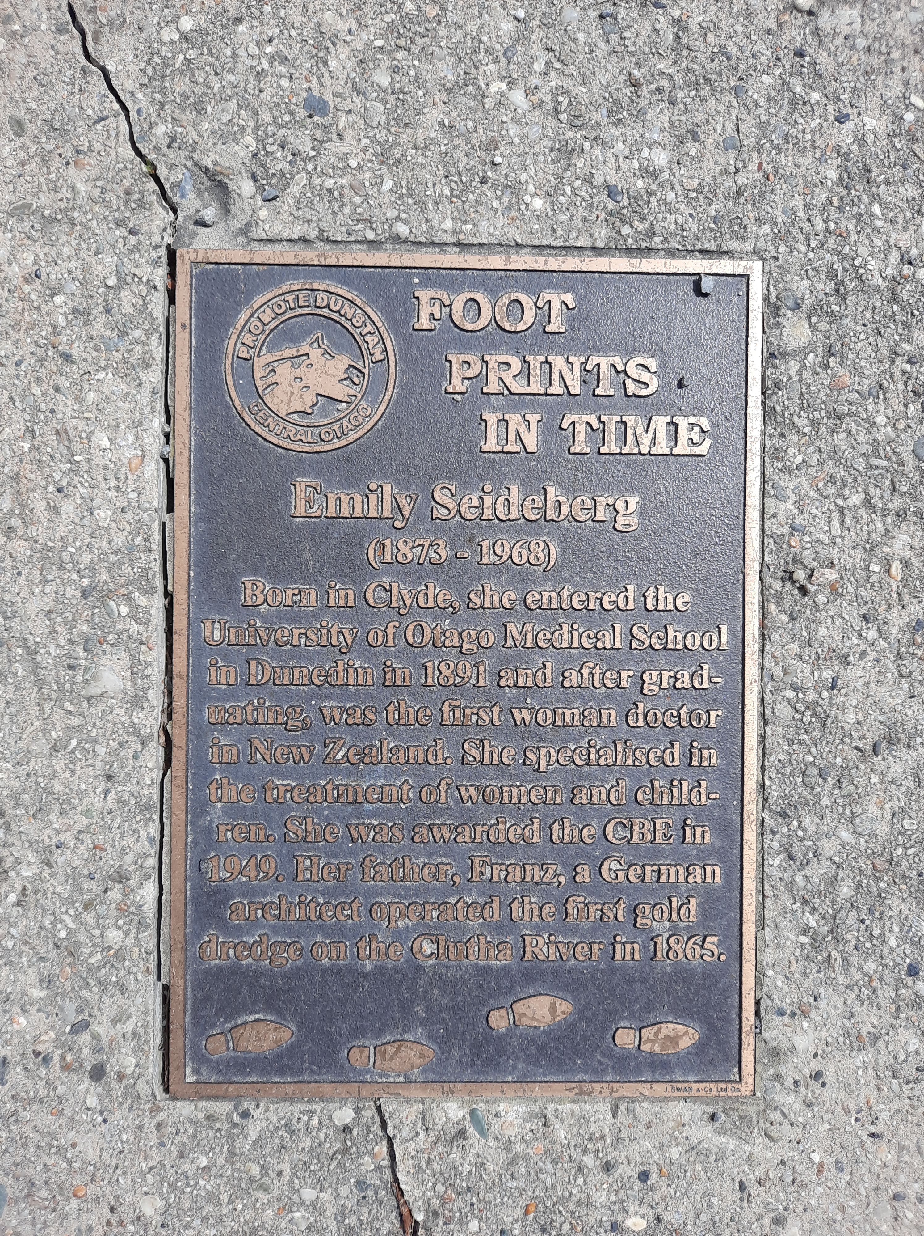 Emily Seideberg has a plaque on the historic walk in the beautiful old town of Clyde, one of the main towns of the 1860s Gold Rush in Central Otago. By one of those amazing twists of fate, the plaque is located right outside the old schist cottage I was staying in (where my family lived in the 1930s) and I was thinking about plot ideas when I literally stumbled upon her. And so, Grace Penrose was born.