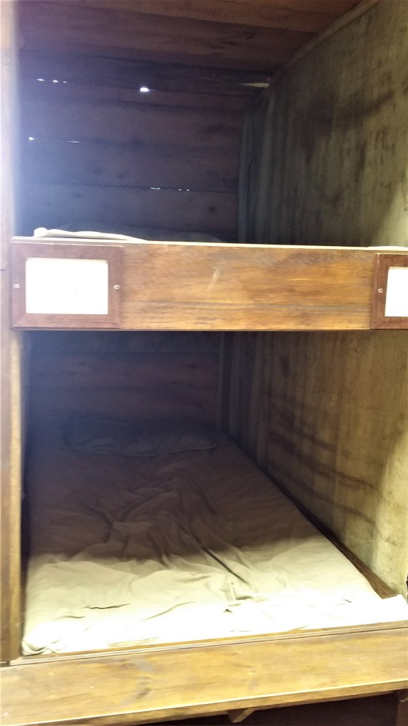 The photos show what the steerage bunks would have looked like, compared to a cabin bed, as well as the long central table that ran through steerage. [Taken at the Edwin Fox Museum in Picton, New Zealand, which is well worth a visit. http://www.edwinfoxsociety.com/]